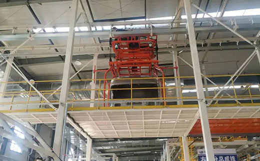 d88尊龙z6重卡白车身焊装生产线pick up自动输送系统、主线自动化焊接线体间的往复杆等输送设备的设计,全面解决传统生产中卡车车身的运输难点,实现自动输送,节省人力提升生产效率。