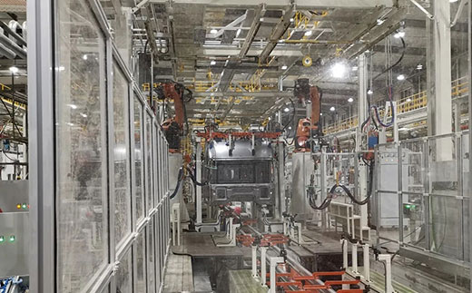 机器人自动焊接取代人工焊接,提升白车身顶盖焊接品质,实现生产车间自动化生产效率。