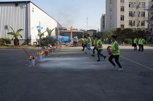 随着消防警报响起,各部门根据所处位置紧急有序疏散至指定地点集合。随后,演习现场模拟在往铁盆浇灌汽油的过程中着火以及演练如何利用灭火器灭火,接着部分员工进行了消火栓、消防水带的使用演练,应急救援演练等。