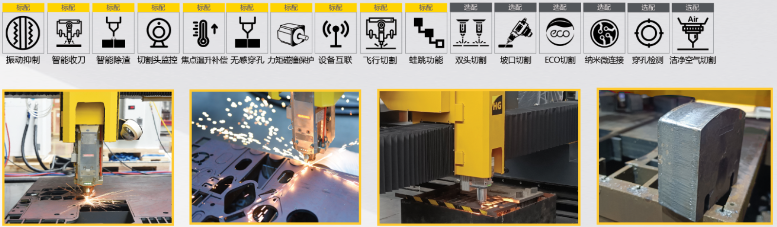 可配置双头切割:可搭配双激光切割头,高强度横梁可承载双切割头的高速切割,专用激光切割头,满足客户24h不停机的连续切割。