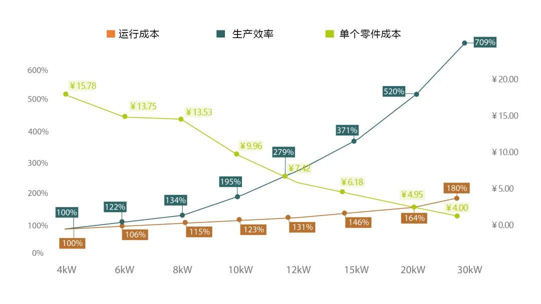 30kW不仅保证了生产流程,在运行成本略微增加情况下,相比于常见6kW级大功率激光切割系统生产效率提升数倍。进一步助力客户控制成本提高生产率。大幅降低单个零件制造成本。